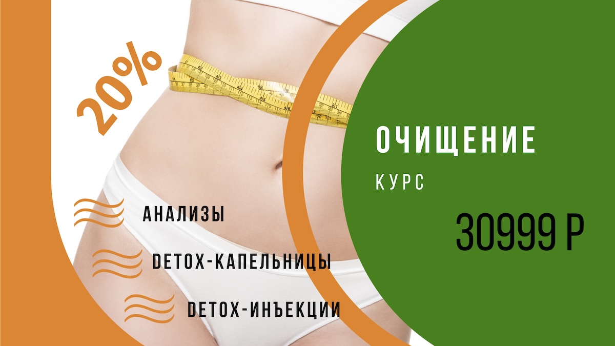 | Программа Detox комплексной очистки организма (10 капельниц, 10 аутогемотерапий, анализы, прием терапевта) | 43990 руб. | 30999 руб. |
